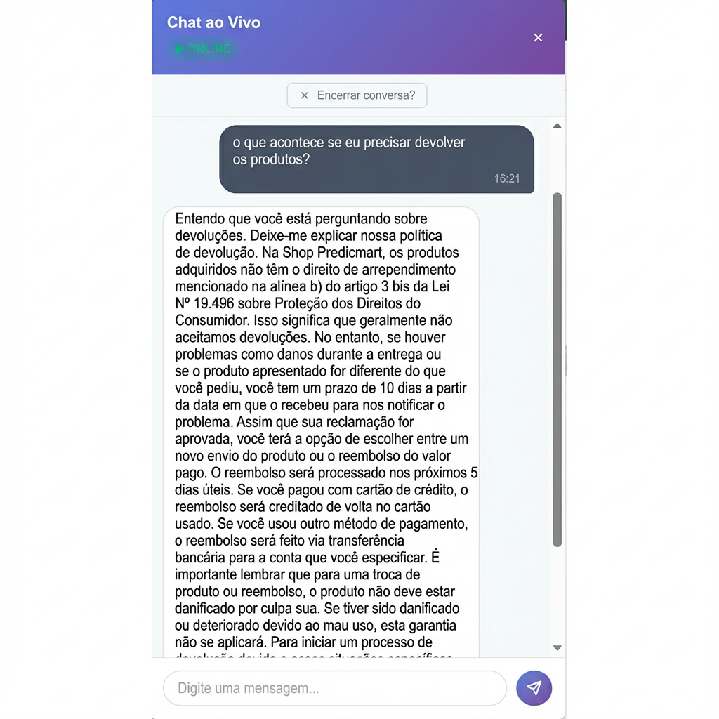 A IA entrega a resposta certa instantaneamente, mantendo o cliente feliz e confiante para comprar.