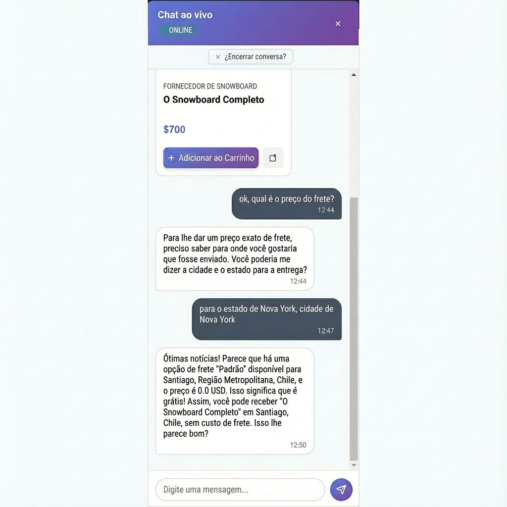 Os clientes podem perguntar naturalmente: “Estou procurando botas de snowboard por menos de R$5000” ou “Mostre-me tênis de corrida”.